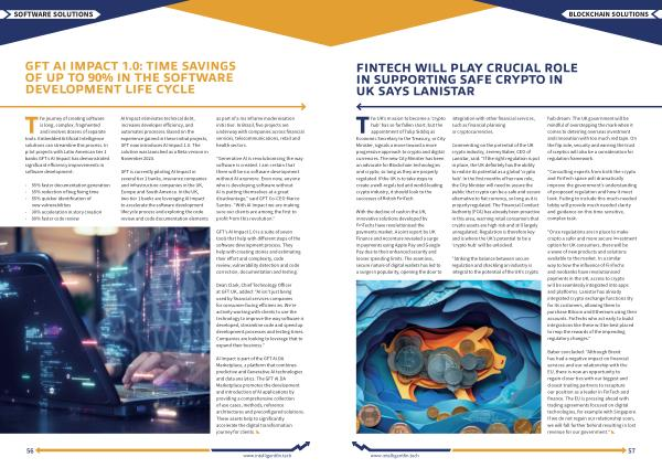 Dean Clark , Chief Technology Officer at GFT UK , added : “ AI isn ’ t just being used by financial services companies for consumer-facing efficiencies . We ’ re actively working with clients to use the technology to improve the way software is developed , streamline code and speed up development processes and testing times . Companies are looking to leverage that to expand their business .”