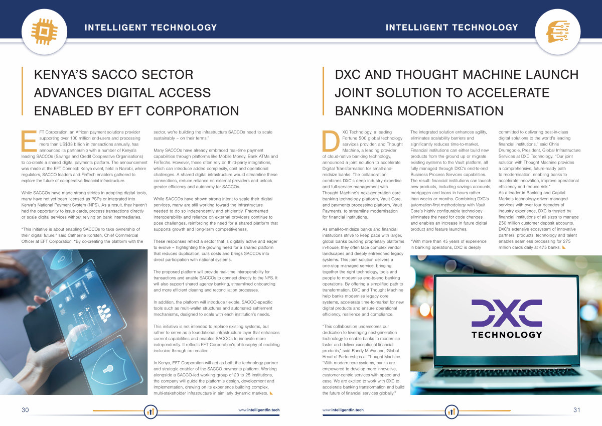 DXC Technology, a leading Fortune 500 global technology services provider, and Thought Machine, a leading provider of cloud-native banking technology, announced a joint solution to accelerate Digital Transformation for small-andmidsize banks. The collaboration combines DXC’ s deep industry expertise and full-service management with Thought Machine’ s next-generation core banking technology platform, Vault Core, and payments processing platform, Vault Payments, to streamline modernisation for financial institutions.